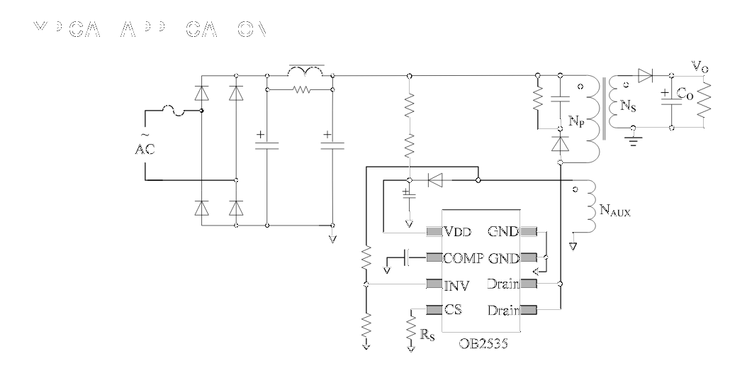 Upstream from the 0B2535CP is a bridge rectifier marked MB103. Between this bridge rectifier and mains power are a resistor and what appears to be an NTC, marked NTC 5D-9 , which apparently is a power NTC thermistor. Funny business. I guess the power supply section is one area where they had to cut costs.