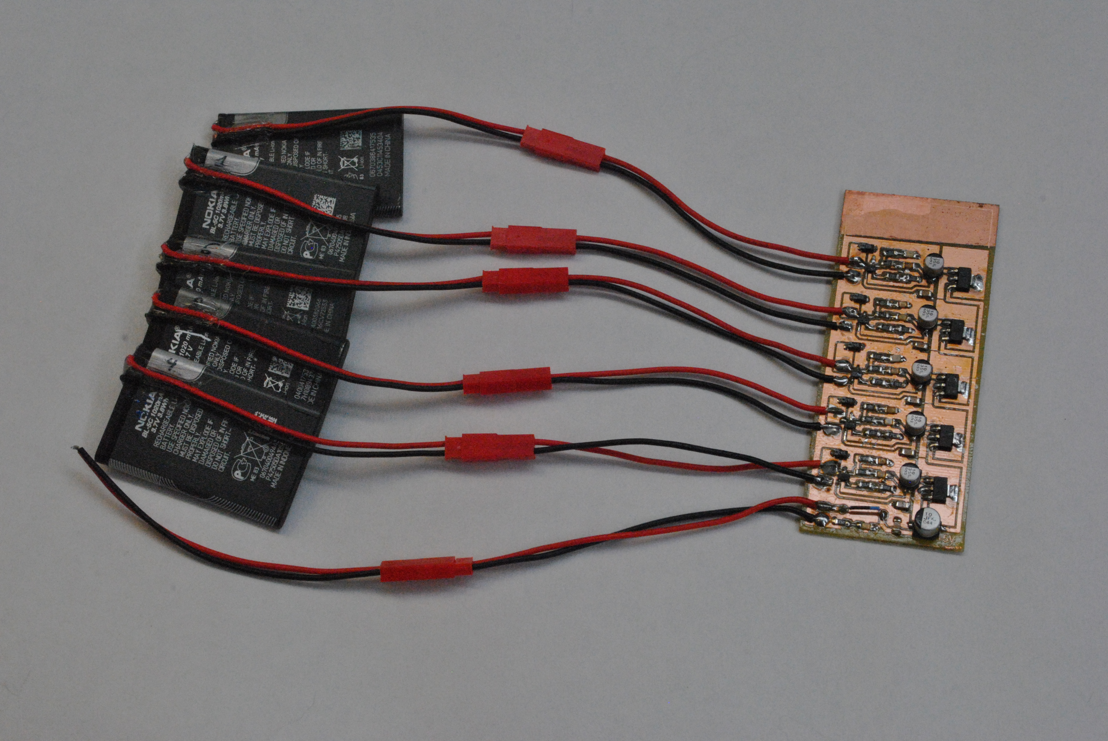 I plan on using a few spare Nokia Li-Ion batteries for my new quadcopter and was in need of a decent battery charger. This project can charge 5 single cell LiPo or Li-Ion (in my case Nokia BL-5C 1020mAh) batteries simultaneously from a single 6-20VDC power source. It is based on Microchip’s MCP73831 integrated charge management IC, which is powered through a 1117 5V regulator.