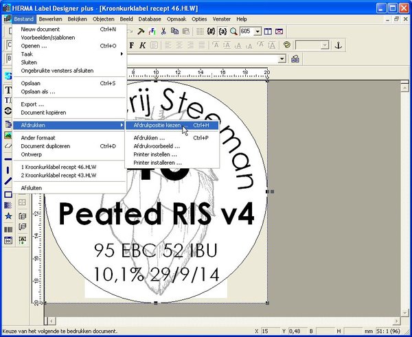 A convenient feature allows you to select the first label you want to start printing from. Suppose you’ve already used 24 labels on a sheet for a previous beer. Just select the 25th label for the next beer and start printing from there. This way you can re-use a partially used sheet for the next batch, just select where the first label on the page is and pull it through the printer again. Do note that on some printers, printing the same sheet again will result in a grey smear on the paper after a while.
