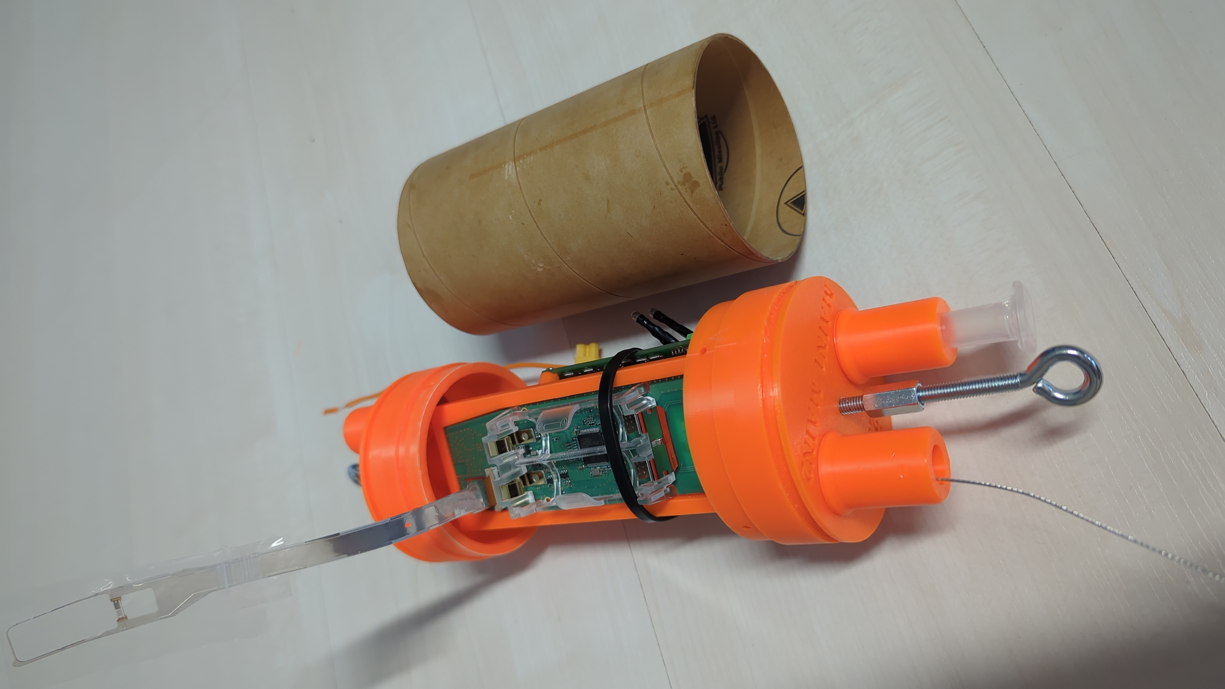 For flight tracking and recovery, I installed a Vaisala RS41 GPS tracker in the payload bay. The RS41 is actually a radiosonde, launched by our local weather service, that I recovered and reprogrammed to amateur radio frequencies. I track it using a TTGO device running the mysondygo firmware, with a companion mobile app that displays real-time position data.