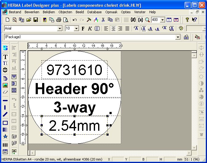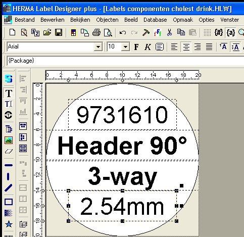 We’ll create a label to hold this information in Herma Label Designer. It is based on the standard template for 3468 labels, and has 4 text fields.