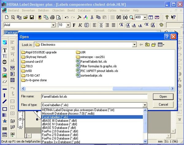 After happily using Herma labels to label my beer bottles , I also want to use them to label jars in which I keep my SMD electronic components. Instead of printing multiple copies of the same label, I needed to figure out a way to print a different text onto each label, preferably without having to type over all the label information that I already have in an Excel file. Luckily, the Herma Label Designer has a feature to import information from a ‘database’. It has a small learning curve, so here’s a quick tutorial.