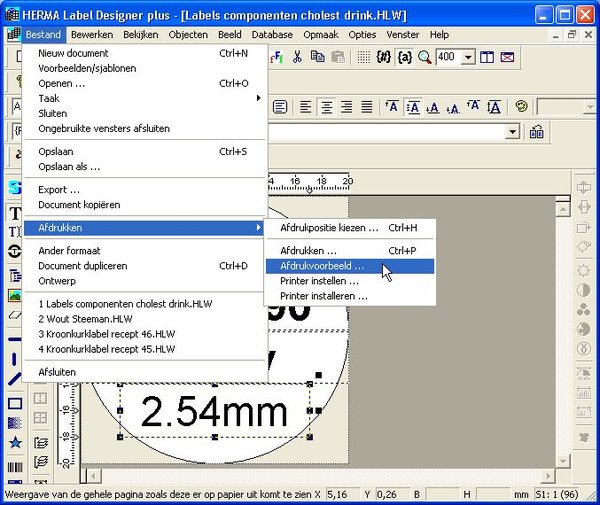 Now let’s do a print preview to see if the labels print with the correct information. Go to File , Print preview.