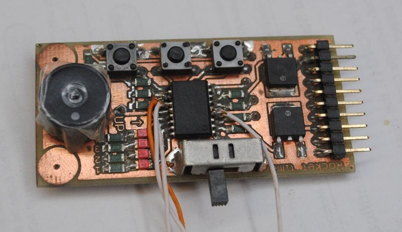The 16F88 Rocket timer is a compact & lightweight rocket timer for firing pyrotechnic charges. It is controlled by a Finite State Machine program, implemented in a PIC microcontroller.