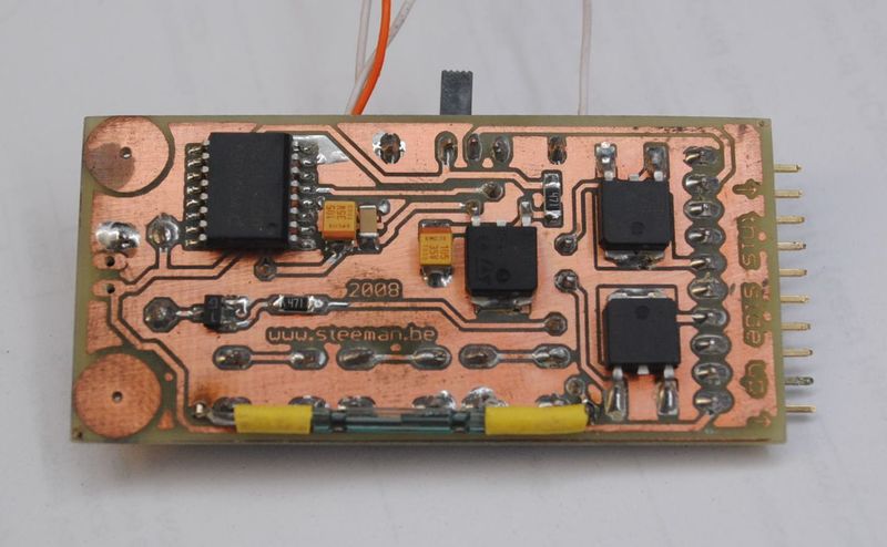 The timer needs to be installed in the vertical orientation. For the correct functioning of the G-switch or accelerometer, it is important to mount the timer with the correct side up. For this purpose, text has been etched in the copper of both the bottom and top layer of the PCB (“This side up” and “UP”).