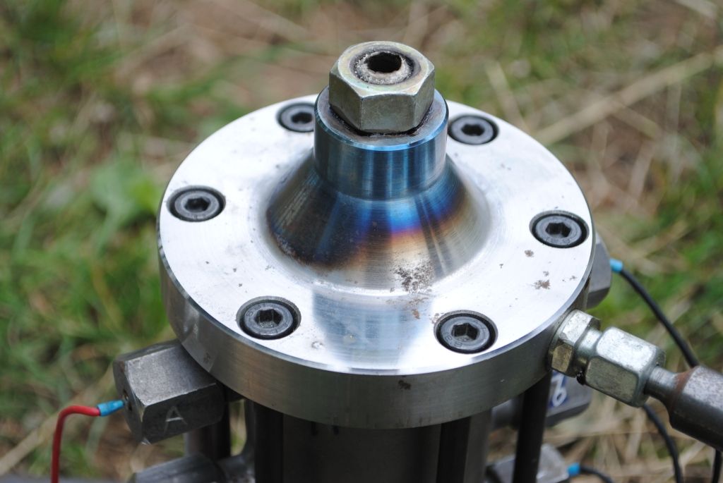 De motor werd geopend. Onmiddellijk was duidelijk dat de laag Parabond ablatief gebrand heeft, dit was te zien aan een afbladerende harde korst aan de binnenwand. De laag is echter niet volledig doorgebrand tot op de fenolbuis, de witte laag was nog duidelijk aanwezig, zij het in iets meer poederige vorm. Aan de dichtingen van de verbrandingskamer met boven- en onderdeksel waren geen sporen van lekkage te zien.