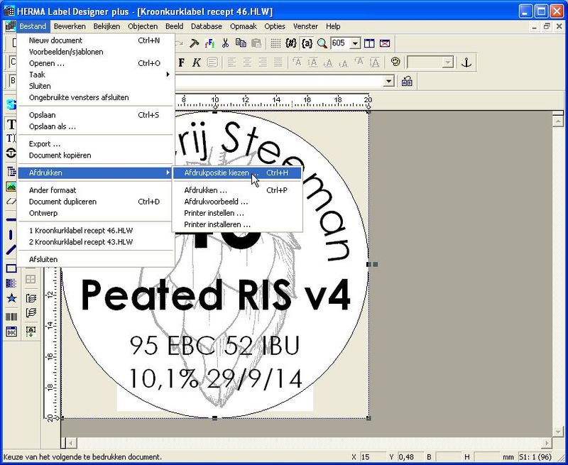 A convenient feature allows you to select the first label you want to start printing from. Suppose you’ve already used 24 labels on a sheet for a previous beer. Just select the 25th label for the next beer and start printing from there. This way you can re-use a partially used sheet for the next batch, just select where the first label on the page is and pull it through the printer again. Do note that on some printers, printing the same sheet again will result in a grey smear on the paper after a while.
