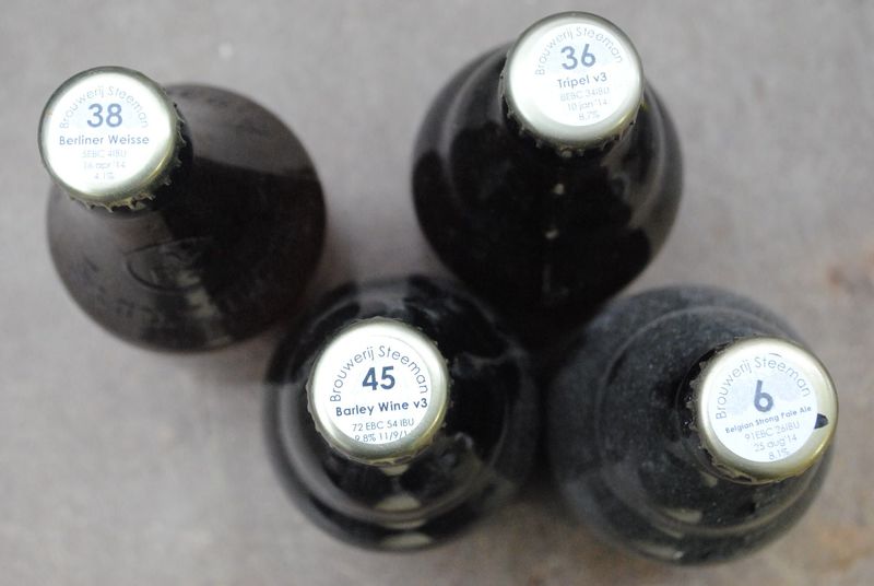 Conveniently I label my beers on the cap and not on the bottle. This way they are easily readable without removing the bottle from the case, and once the bottle is uncapped and thoroughly rinsed, I put it in the crate on it’s head and it is ready for re-use, without removing any pesky bottle labels.