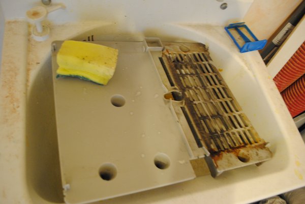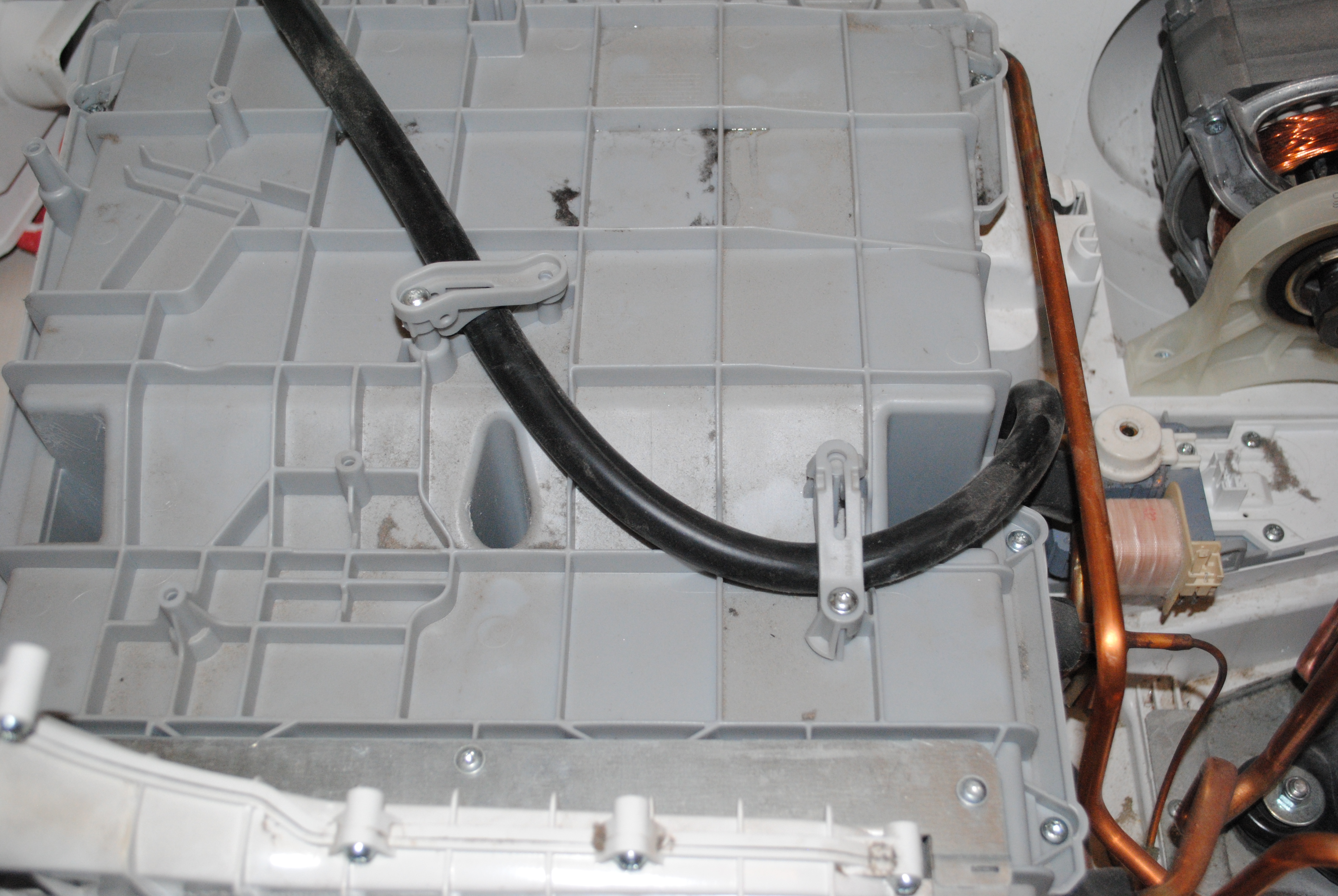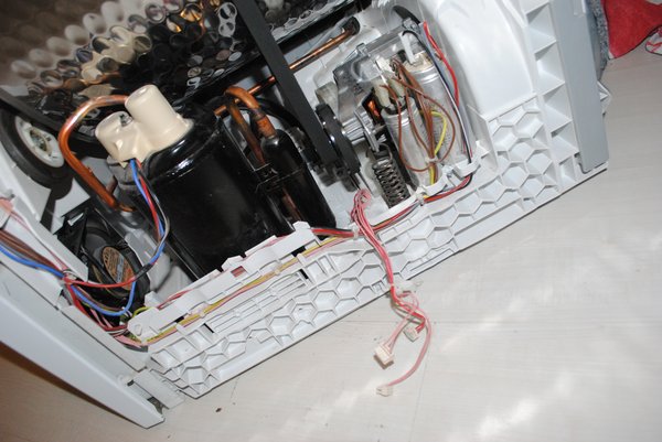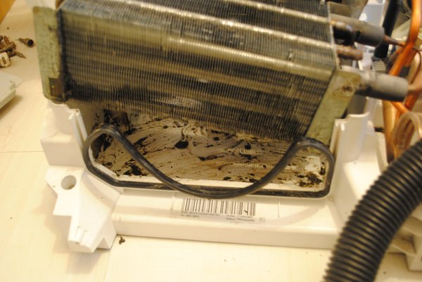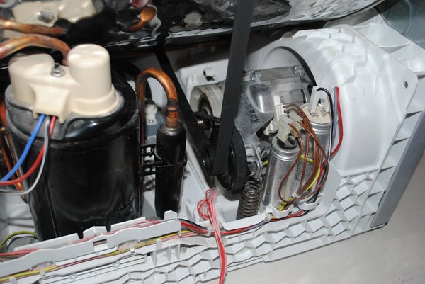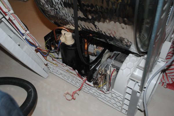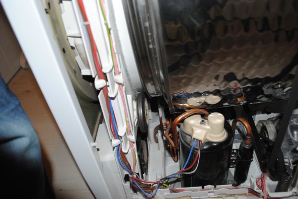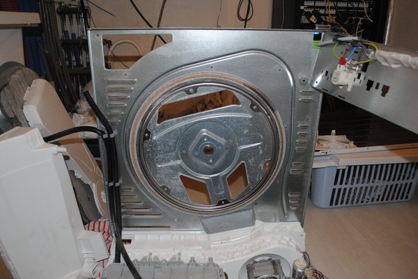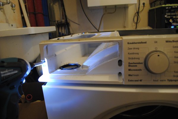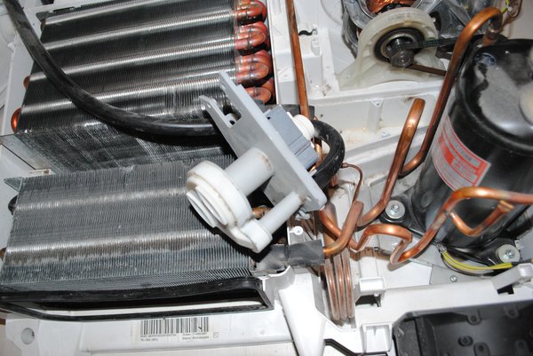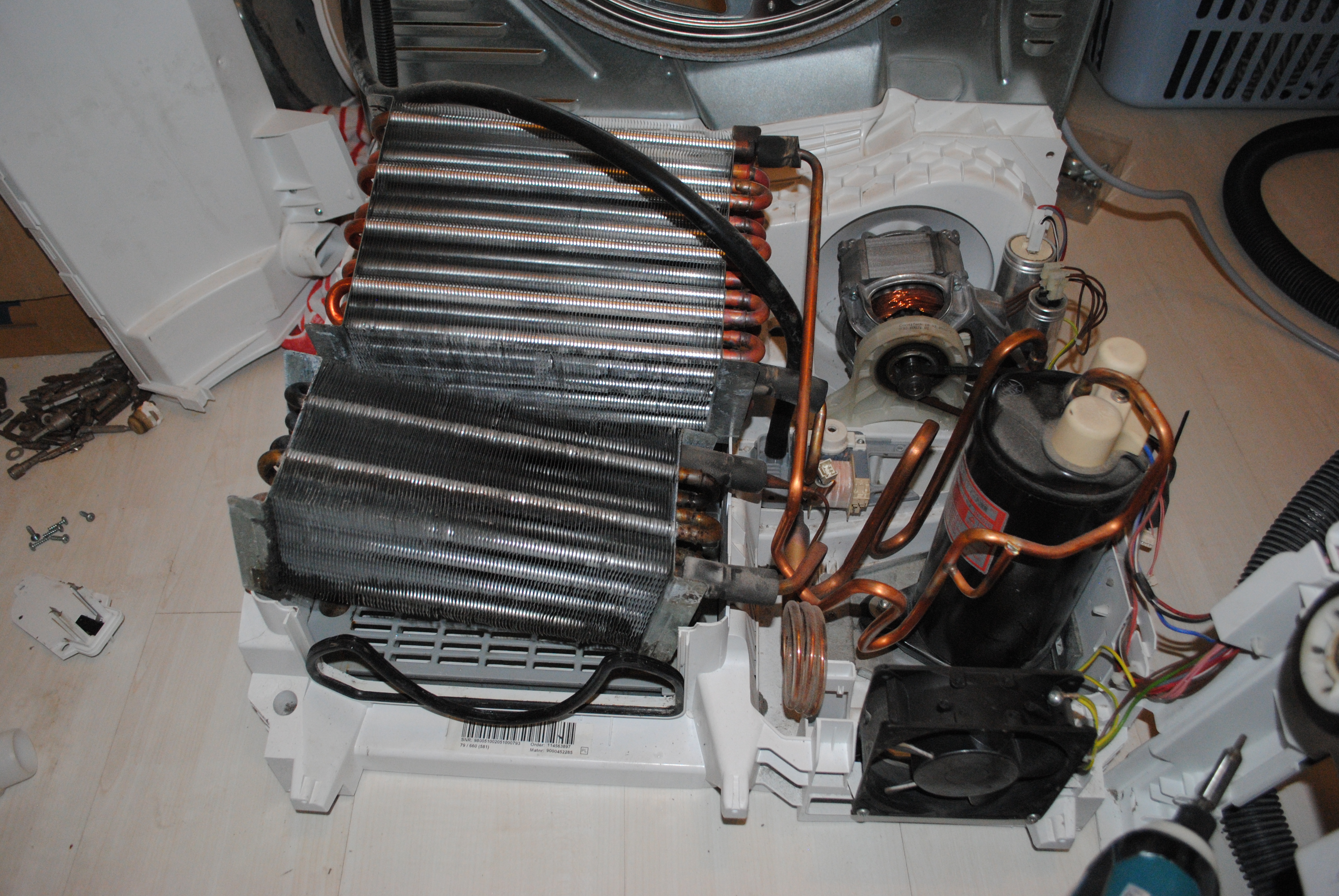 So my Siemens WT46W560FG clothesdryer stopped working. It gave an error signalling that the condensation tray was full, while in fact it wasn’t at all. Checking the internet reveals that this is a very common problem with this type of dryers, so much that it can be considered a design flaw. Siemens wanted over a third of the cost of a new machine to repair my 4-year old machine, so I said no and decided to investigate the problem myself. Turns out all is needed to get the machine running again is a (very) thorough clean. Here’s the pictures, should you be interested to do this yourself.