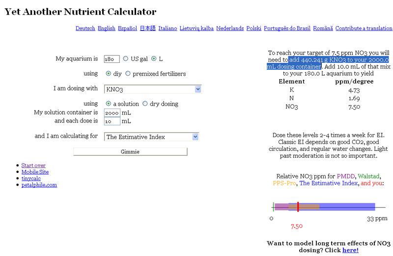This means I dissolved 440g of KNO3 in 2L of hot water, and then, 3 times a week, I fill a 10ml syringe of this solution and add it to my tank and do a weekly water change . Let’s see if this improves my plant growth.