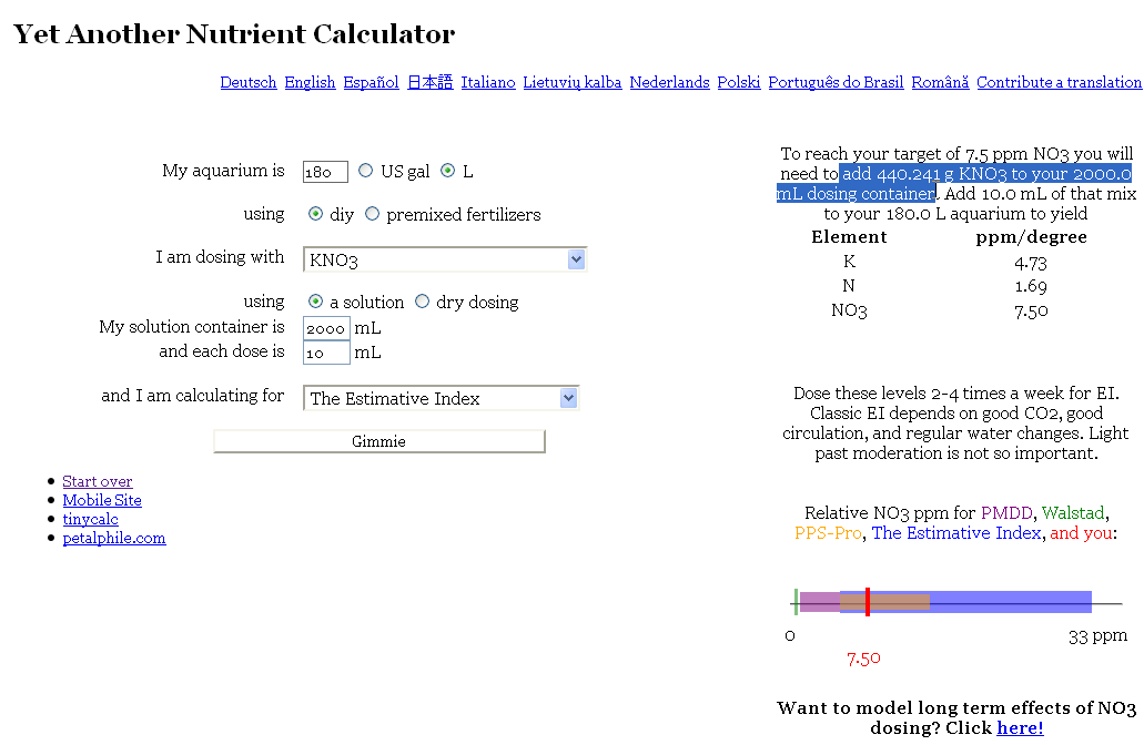 To determine the dose of nitrate to add, I’ve used this Estimative Index calculator