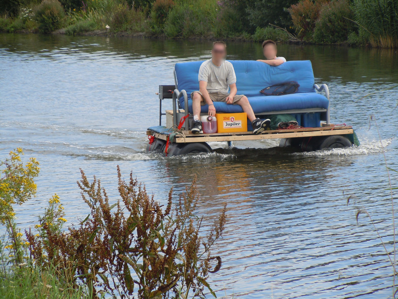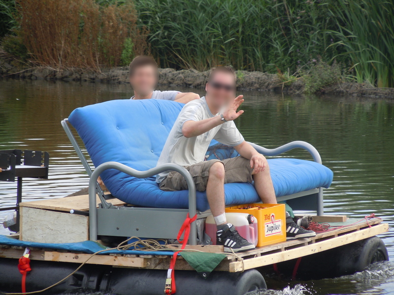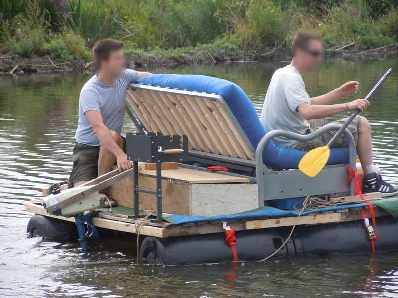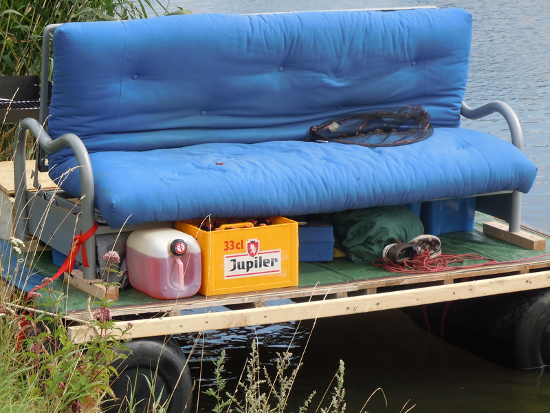 One day we were sitting by the waterside, fishing. We contemplated that it would be so comfortable to have a sofa on the bank of the river, no, it needed to be on a platform on the water! With a little barbecue on the side for food. And a sofa bed so we could sleep under a tent canopy. Well, things got a little out of hand from there… We built it, took the thing onto the water, lived on it for a few days and had lots of fun along the way!
