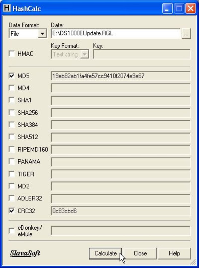 - Check the MD5 sum of the DS1000EUpdate.RGL file on your USB stick. The MD5 sum for this file should be 19eb82ab1fa4fe57cc9410f2074e9e67