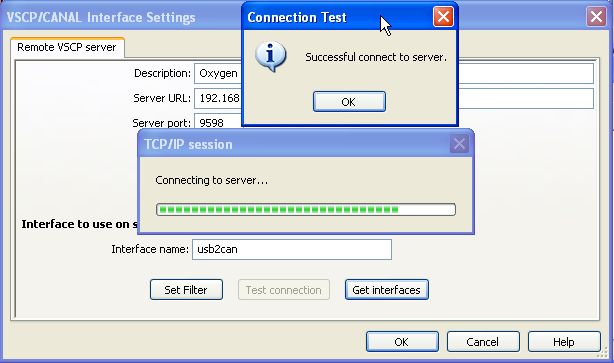 If you want you can test the connection between the TCP/IP: Oxygen interface which we just defined and the VSCP daemon on the other machine by clicking the Test connection button.
