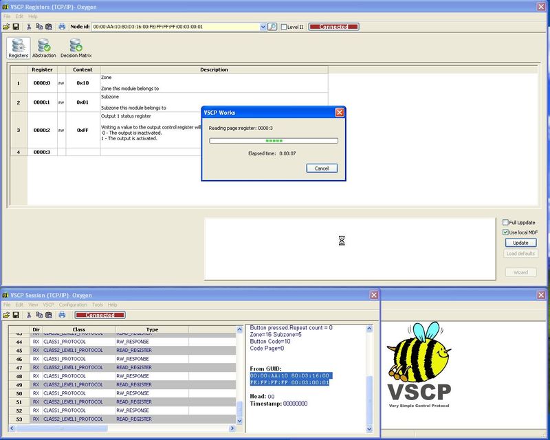 A VSCP client should now open, and it should show Connected as its status.