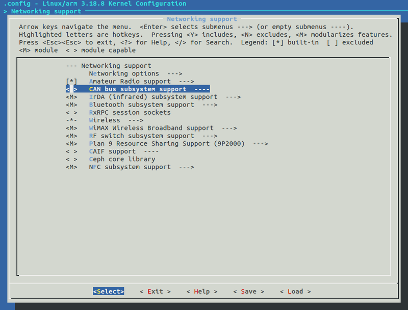 Next we’ll have to change the kernel configuration to include CAN support.