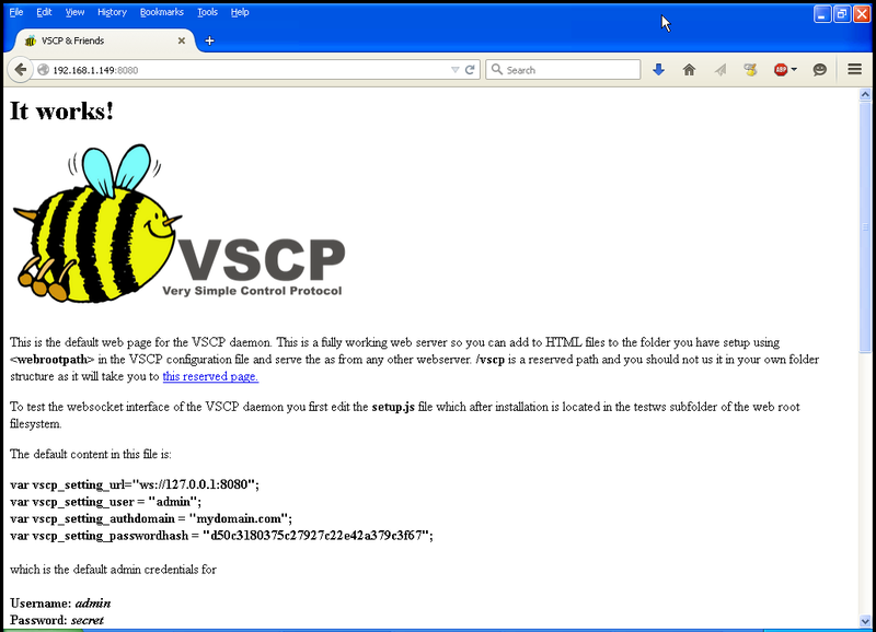 Point your browser to http://192.168.1.7:8080/vscp and you should see this page: