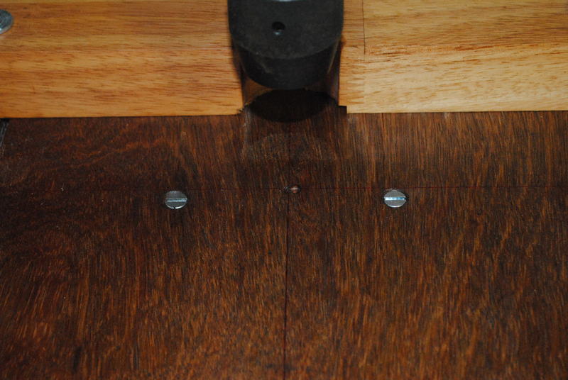 The new table is secured to the smaller original metal table with two M6 screws. They have recessed heads so that they don’t protrude from the table surface.
