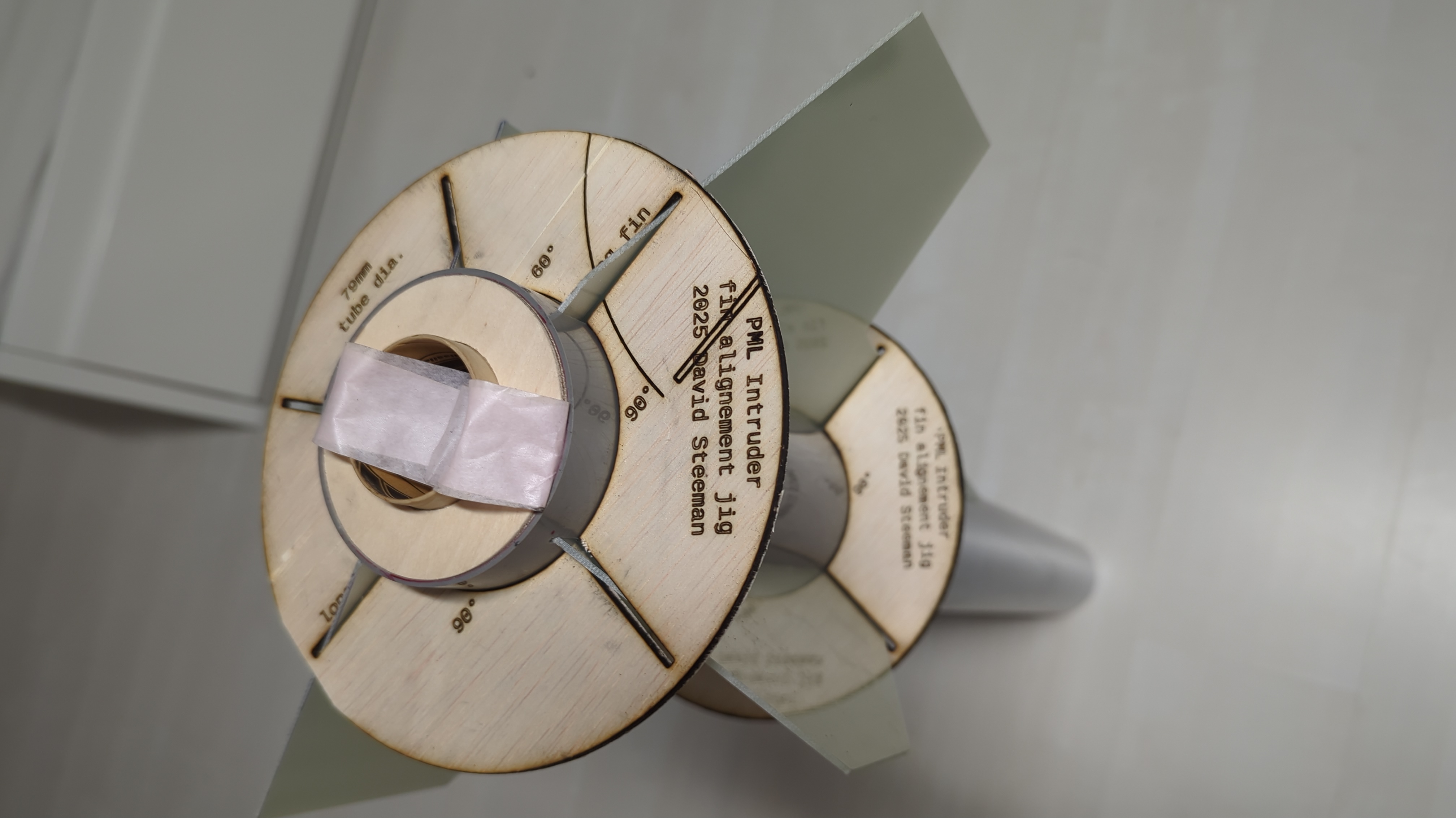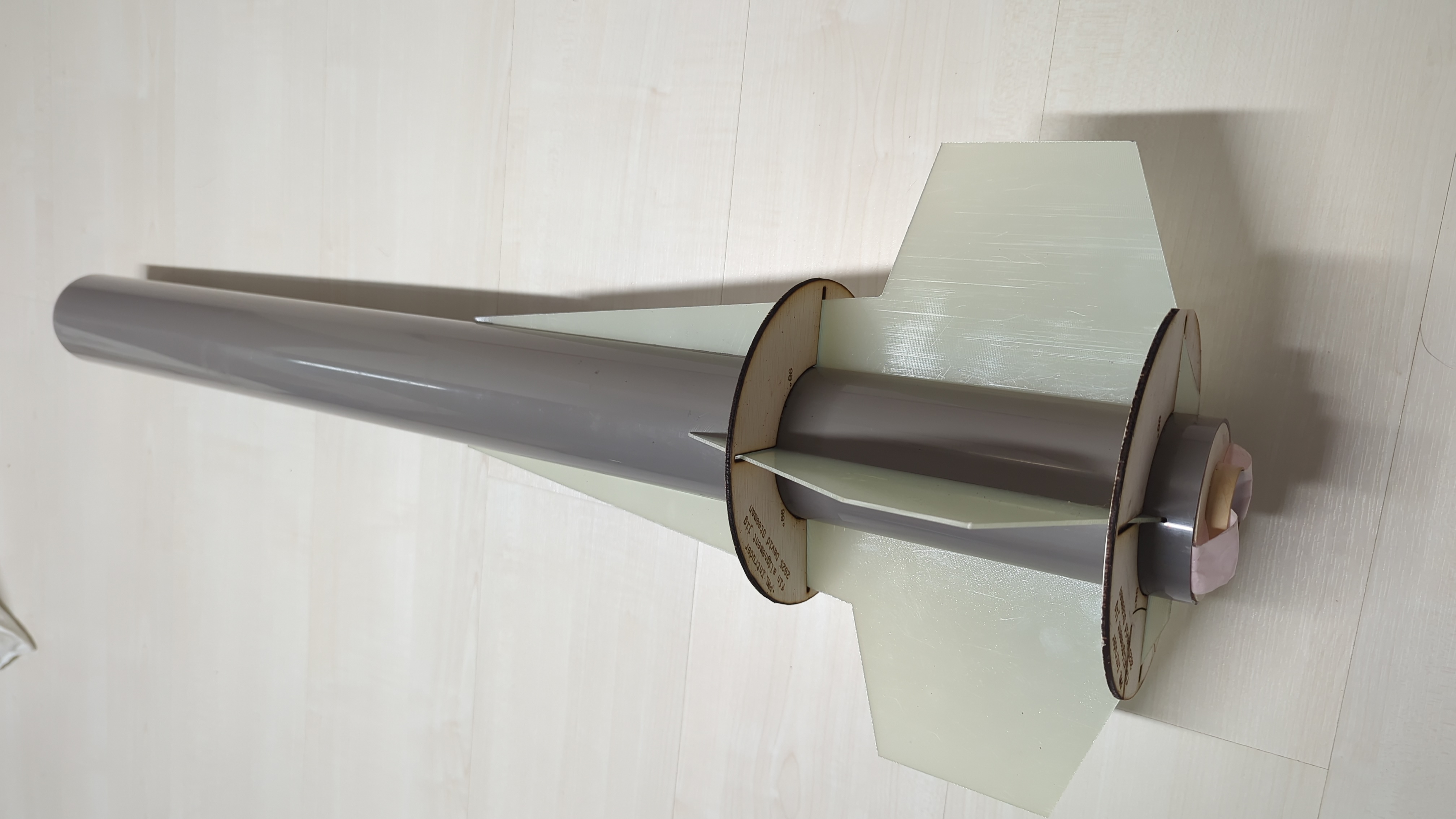 Proper fin alignment is critical for stable flight and to avoid roll. I laser-cut a custom fin alignment jig to ensure the fins were perfectly straight and symmetric. The fins are attached through the body tube and onto the motor tube with epoxy, and filleted for maximum strength.