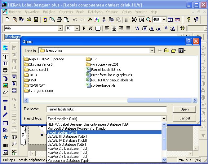 After happily using Herma labels to label my beer bottles , I also want to use them to label jars in which I keep my SMD electronic components. Instead of printing multiple copies of the same label, I needed to figure out a way to print a different text onto each label, preferably without having to type over all the label information that I already have in an Excel file. Luckily, the Herma Label Designer has a feature to import information from a ‘database’. It has a small learning curve, so here’s a quick tutorial.
