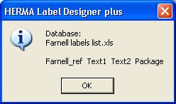 If we attempt to print this label, we’ll end up with a sheet full of this same label. To print one label for each line in our Excel sheet, we’ll have to link the Excel file to the labels. This is done in the Database menu in Herma Label Designer.