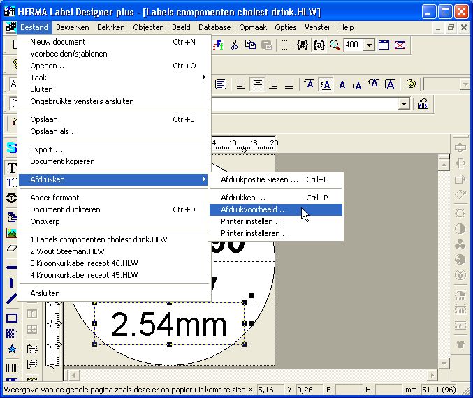 Now let’s do a print preview to see if the labels print with the correct information. Go to File , Print preview.