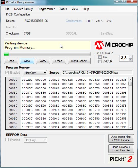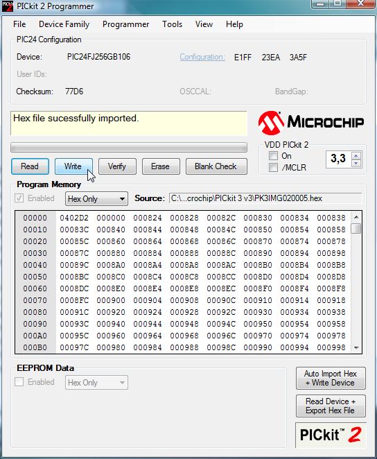 Now hit the Write button to program the file into the PICkit3’s microcontroller.