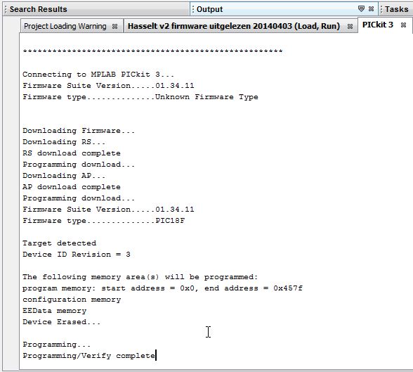 If you’re paranoid and want to check if the firmware in the PICkit3 matches the one in the file we loaded, you can click the verify button.